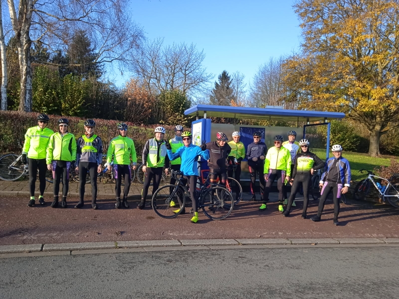 A 12 heures, 11 cyclos sont partis jusqu’à Blainville-sur-Orne ,20km, puis ont fait le brevet de la côte de nacre, 65 km,doit un total de plus dec100 km pour tous.